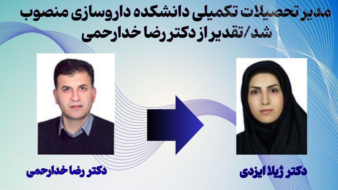 همچنین، ضمن قدردانی از زحمات و تلاشهای ارزشمند جناب آقای دکتر رضا خدارحمی در دوره مسئولیتشان در سمت مزبور، موفقیت و سربلندی ایشان در سمت جدید (مدیر آزمایشگاه کنترل غذا و دارو) را آرزومندیم.