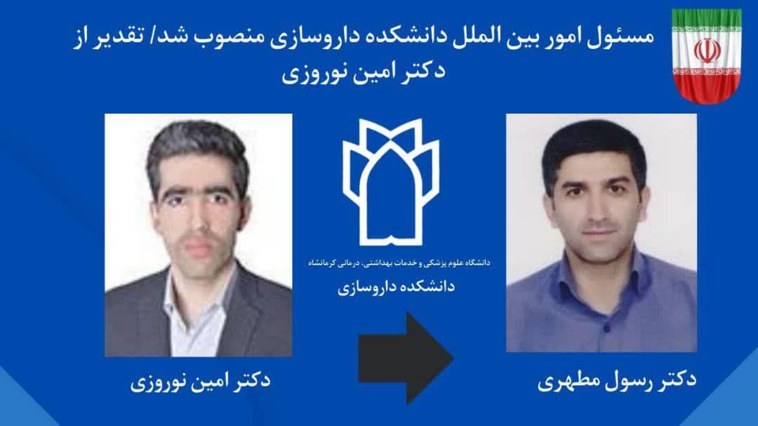 دکتر سجاد فخری، رئیس دانشکده داروسازی، طی ابلاغی دکتر رسول مطهری را به سرپرستی «مسئول امور بینالملل دانشکده داروسازی» منصوب کرد.
